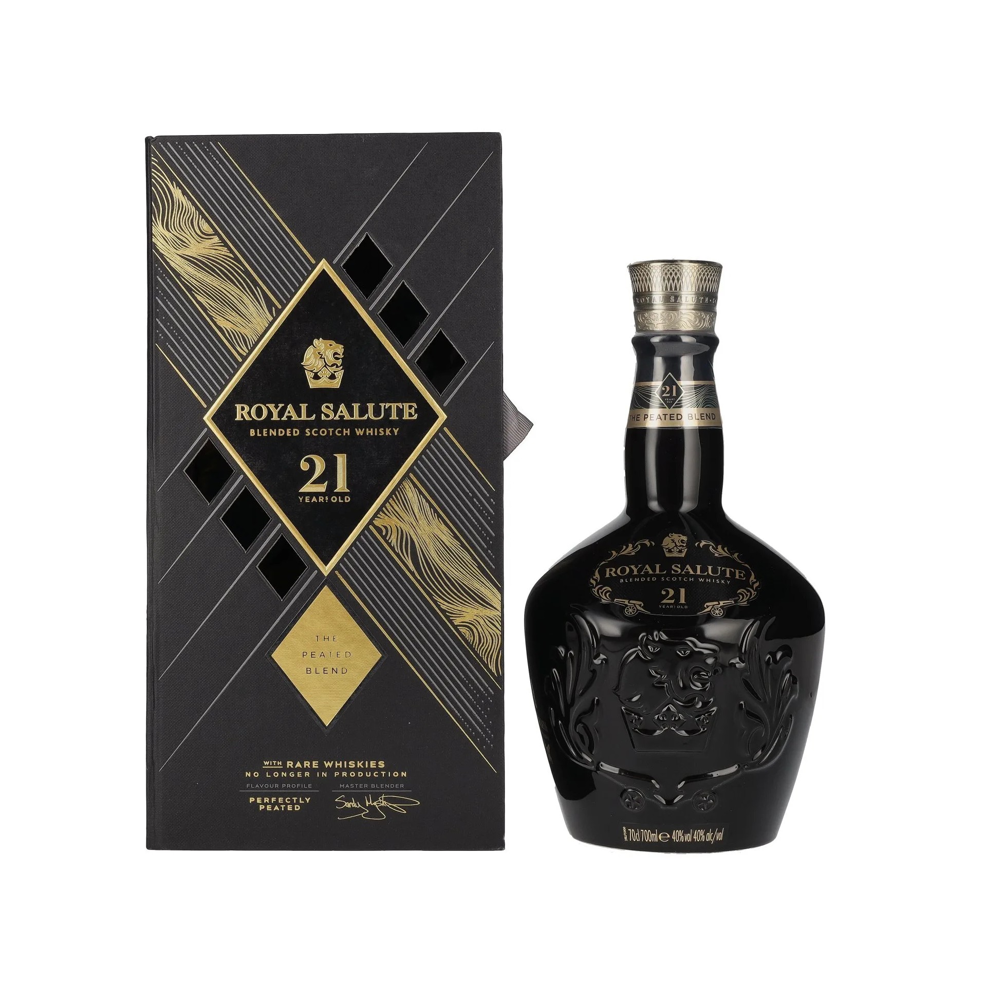 + Free ShippingRoyal Salute 21 Year Old The Peated Blend (ABV: 40%) is a luxury Scotch whisky crafted from rare stocks, including whiskies from “lost” distilleries like Imperial, all aged at least 21 years. It introduces a smoky twist to Royal Salute’s refined style, making it a prized collector’s edition.